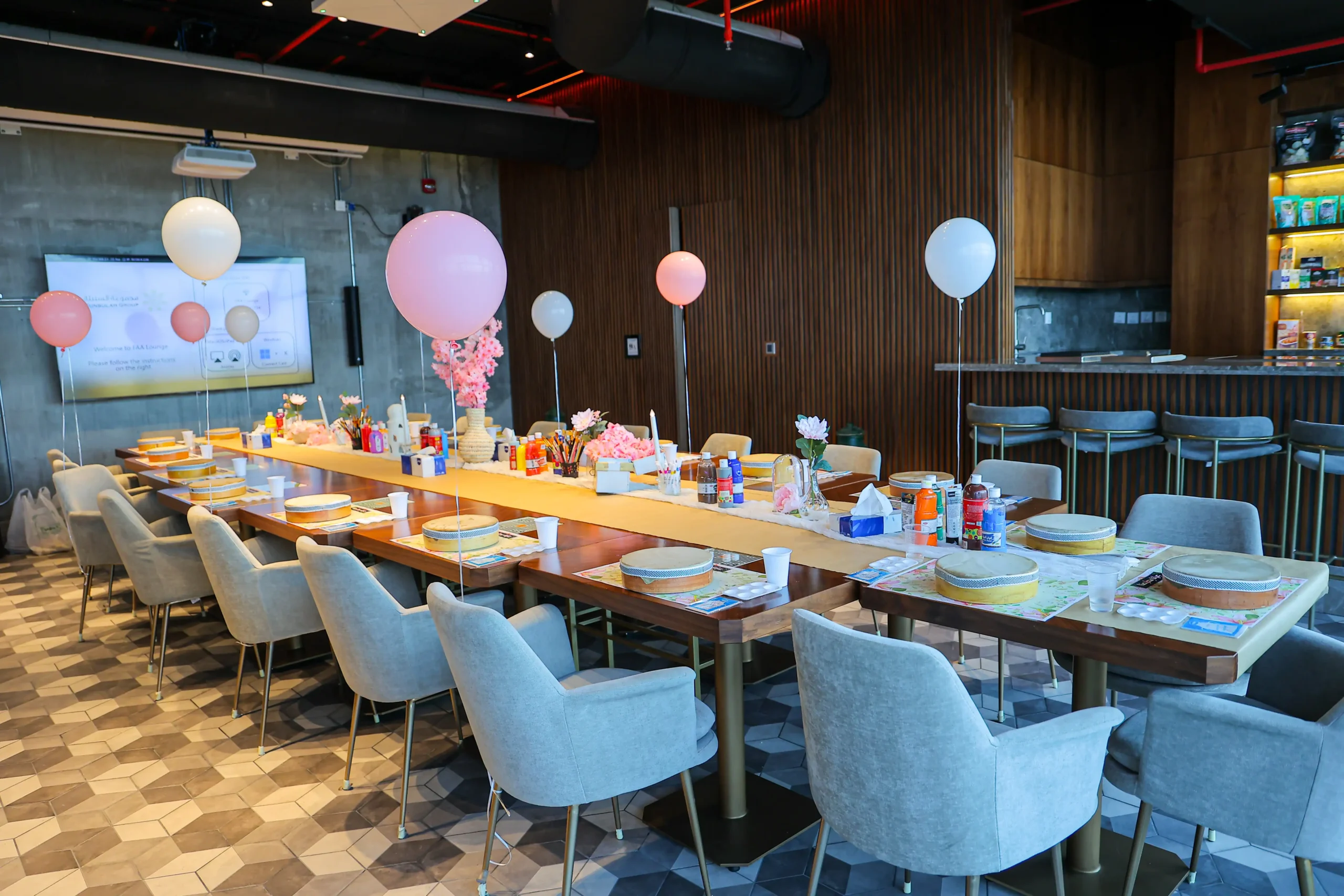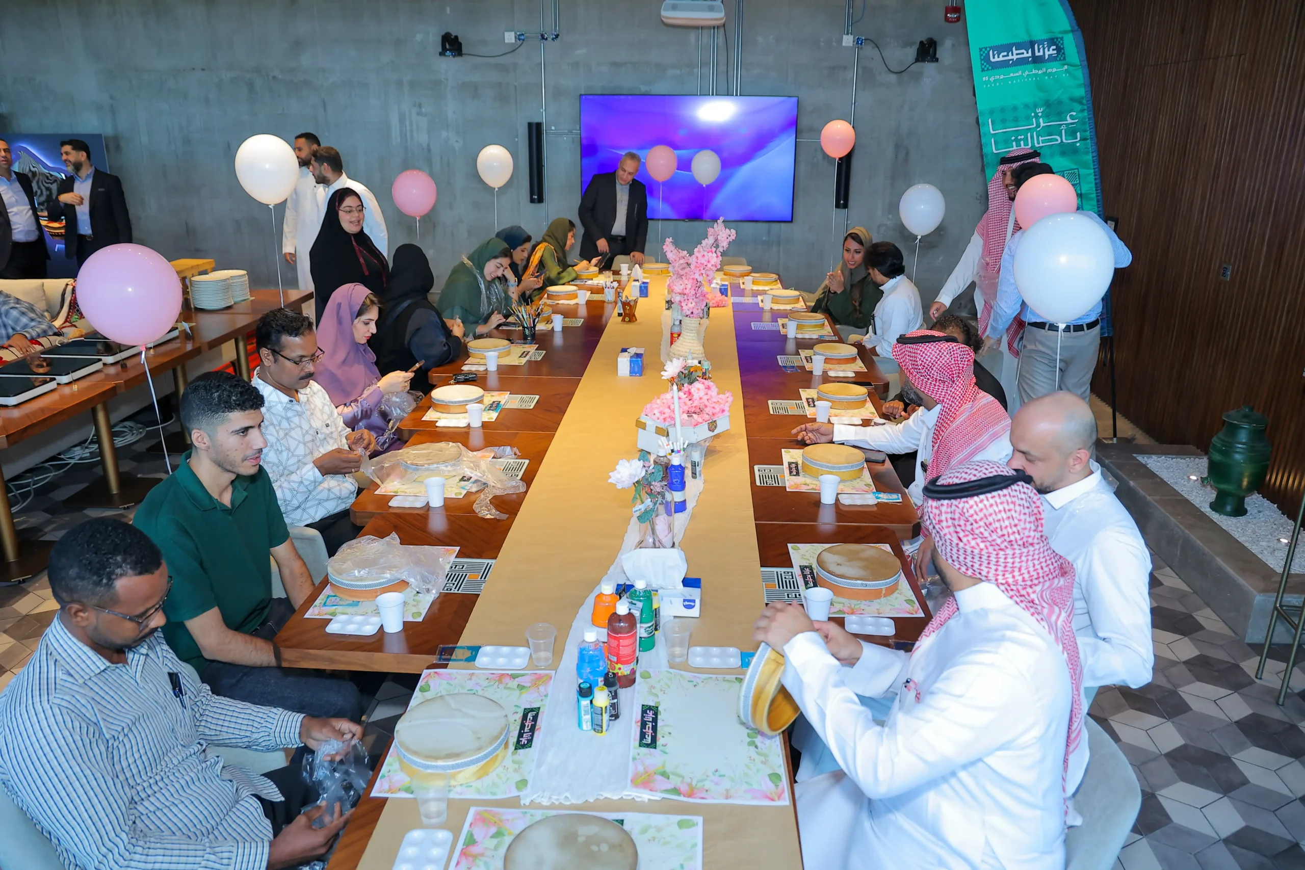 Execution of the National Day celebration for one of the PIF companies,where the venue was fully prepared in line with the National Dayidentity, and interactive workshops were activated for employees such as drum painting and electronic quiz competitions, along with providing full hospitality services